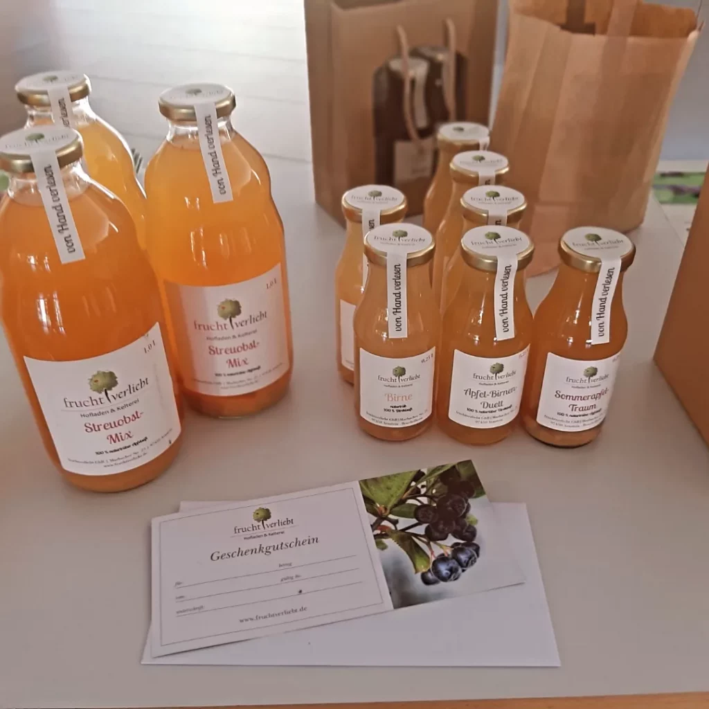 - Apfelsäfte von der Streuobstwiese – auch sortenrein gekeltert als Probierpakete